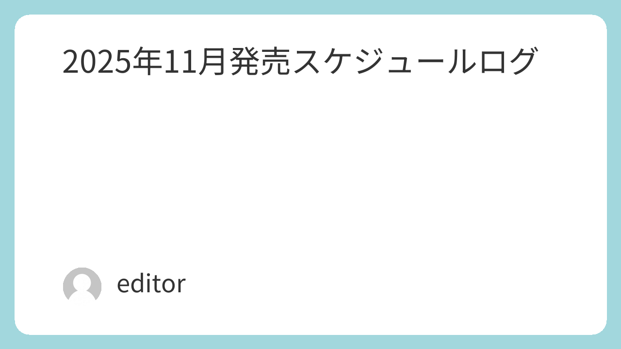 2025年11月発売スケジュールログ 発売スケジュールログ X Facebook はてブ LINE 2026.03.01 目次 2025年11月29日新クトゥルフ神話TRPG シナリオ集 カタリスト92025年11月20日魔術師育成スローライフRPG プレシャスデイズソード・ワールド2.5サプリメント インフィニットコロッセオ ‐夢幻の魔物たち‐ 2025年11月29日 新クトゥルフ神話TRPG シナリオ集 カタリスト9 新クトゥルフ神話TRPG シナリオ集 カタリスト9KADOKAWA Amazonの商品レビュー・口コミを見るAmazon楽天Yahoo!ショッピング 2025年11月20日 魔術師育成スローライフRPG プレシャスデイズ 魔術師育成スローライフRPG プレシャスデイズKADOKAWA Amazonの商品レビュー・口コミを見るAmazon楽天Yahoo!ショッピング ソード・ワールド2.5サプリメント インフィニットコロッセオ ‐夢幻の魔物たち‐ ソード・ワールド2.5サプリメント インフィニットコロッセオ ‐夢幻の魔物たち‐KADOKAWA Amazonの商品レビュー・口コミを見るAmazon楽天Yahoo!ショッピング